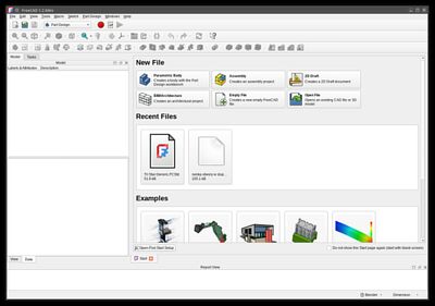 FreeCAD. Widok ogólny po uruchomieniu.