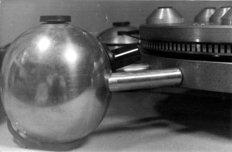 Ten gramofon zrobiłem dawno.... Trudno mi było nawet określić to jakoś w czasie, ale na szczęście po tłach starych zdjęć udało się to zrobić. Było to połączenie początków sztuki inżynierskiej na poziomie III roku studiów i inspiracji przedziwnym gramofonem jednego z kolegów. Z całą pewnością zacząłem go rysować w roku 1977 lub 1978. Potem przystąpiłem do realizacji i zaczęły się schody czyli poszukiwanie materiałów. Oczywiście największy problem był z materiałem na talerz i podstawę. Wtedy z braku innego wyjścia padło, aby te najbardziej kłopotliwe elementy odlać. Z pewnym trudem, korzystając ze znajomości kolegi, znaleźliśmy odlewnię aluminium. Trud polegał na tym, że oblężone przez służby mające na celu zwalczanie wszelkich zagrożeń związanych z odradzaniem się kapitalizmu, zakłady rzemieślnicze były wtedy dość dobrze zakonspirowane. Okazało się ponadto, że są kłopoty z odlewami tego gabarytu, co udało się jakoś rozwiązać (przez znalezienie przypadkiem skrzynki odlewniczej odpowiednich rozmiarów, która nie potrzebna zalegała w zaprzyjaźnionej firmie). W końcu wykonałem ze sklejki modele trzech elementów i elementy udało się odlać. Przy okazji trzeba powiedzieć, że w odlewniach tradycyjnie płaci się od kilograma, więc trzy spore odlewy były jak na one czasy dość drogie. Odlewnie głównie produkowały wtedy antyki, a przy okazji okazało się, że jako element jakiegoś finezyjnego żyrandola odlewane są kule puste w środku o wymiarach podchodzących pod nasz projekt. Jedna z nich została odlana jako pełna, aby łatwiej zamocować silnik. Pozostało elementy obrobić. Ten trud podzielił się pomiędzy trzy warsztaty i jakoś to w końcu dało się uzyskać.