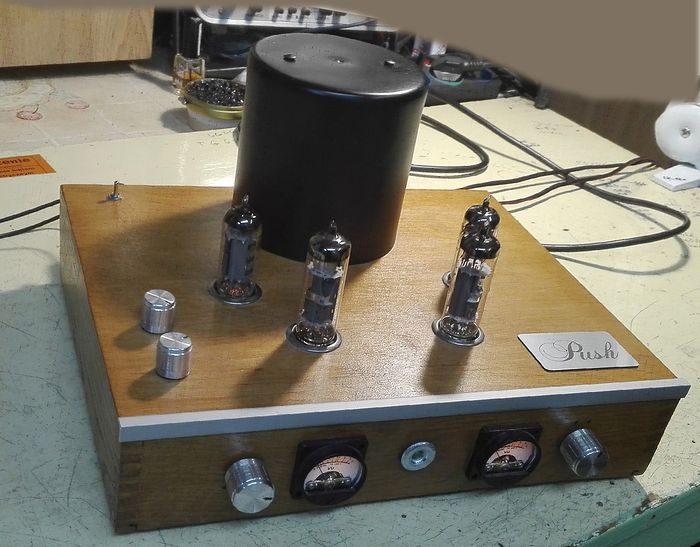 Jako, że technika lampowa jest w sumie prosta, a poznawałem ją jako pierwszą, szybko nabyłem w cenie złomu dwa Bambiniaki i postanowiłem pozbawić je wad fabrycznych oraz zaopatrzyć w jedną obudowę. Pozwoliło to na uzyskanie wzmacniacza zintegrowanego złożonego z dwóch monobloków. Warto wspomnieć tu czym jest wzmacniacz zintegrowany, jest to konstrukcja zawierająca w sobie przedwzmacniacz, korektor barwy i końcówkę mocy. Oczywiście zacne systemy audio składają się z odrębnych końcówek mocy i odrębnych przedwzmacniaczy, jako przykład przytoczę tu wspomnianego Quada 405.