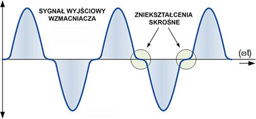Jak w szkole, każdy chciał chodzić do klasy A, bo w B to same łobuziaki były. To podejście przenosi się też na grunt audio, już mówię czemu. Oczywiście aby jednolity sygnał (+ -) trafił na tranzystory bądź lampy przypisane do odpowiedniej połówki, należy go przepuścić przez odwracacz fazy (to taki układ który potrafi odfiltrować "plus", kiedy trzeba to i "minus"(, kiedy na niego popadnie) i wtedy sygnał jest obrabiany raz przez jeden element na wyjściu, raz przez drugi (pchaj i ciągnij, na zmianę) czyli z angielska Push Pull, no i stąd mamy znany skrót - PP. Wzmacniacze w klasie AB, przy małych mocach pracują w klasie A, po przekroczeniu pewnej mocy zaczynają pracę w klasie B. Wzmacniacze PP w klasie B zawsze są Push Pull i tyle. Ale to wygląda tak ładnie tylko z pozoru, niestety zdarza się, że wzmacniacz PP nie do końca dokładnie dopasowuje "górki" wykresu z "dołkami", powstają wtedy zniekształcenia skrośne, widoczne na wykresie oscyloskopu i słyszalne uchem.