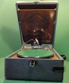 Gramofon został wypatrzony w składzie z antykami, których przykłady "załapały się" w tle. Konstrukcja jest prostsza bowiem naprawdę ogranicza się do tego czym dysponuje pojemnik na chleb. Gramofon ma talerz wykonany jako odlewu ze ZnAl-u jest to więc w tym sensie konstrukcja jakby to dziś powiedzieć "wypasiona".