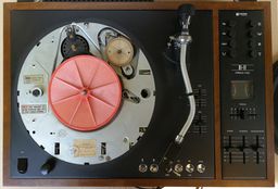 Oddzielną zagadkę stanowi talerz. Patrząc na talerze od spodu który jest który da się określić jedynie po licznych pieczątkach kontroli, o ile pamiętam, to stosowne plenum uchwaliło wtedy, że pokonamy Zachód bijąc ich jakością, a liczne kontrole to zagwarantują. Ciekawe, że wszystkie nadlewy technologiczne od spodu są identyczne. Oczywiście Adam nie wybierał się do USA więc talerz nie ma wersji stroboskopu dla częstotliwości 60 Hz i to je różni na pierwszy rzut oka. Drugim słabo widocznym szczegółem jest inny stożek mocujący talerz na osi. (Stwierdziliśmy empirycznie występowanie "w przyrodzie" dwu różnych stożków jednego dla produkcji Japońskich i drugiego dla produkcji europejskich, co może wynikać z wymiarów raz calowych, a raz metrycznych). Kusi nas wykonanie eksperymentu, aby prowizorycznie dokonać zamiany talerza, co wszak jest możliwe tylko w jedną stronę (większy otwór na mniejszy stożek). Myślę, że hipotezę o tym, że talerze wychodziły z jednej fabryki można uznać za możliwą, ale jednak wymagającą jakiejś poważniejszej weryfikacji.