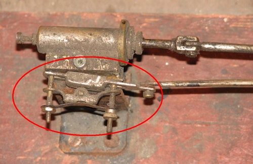 Wycięcie zakreślone na suwaku zapewne steruje wlotem pary do cylindra. Natomiast otwór zakreślony na cylindrze jest pewno wylotem pary poza silnik. Ew. odwrotnie, zaleznie od kierunku obrotu silnika.