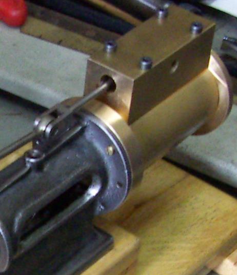 Otwór na suwak z jednej strony zaślepiony, z drugiej (od strony cięgna) z dławnicą (dla elegancji - nie ma co go za bardzo doszczelniać, bo tam para nie będzie już pod ciśnieniem).