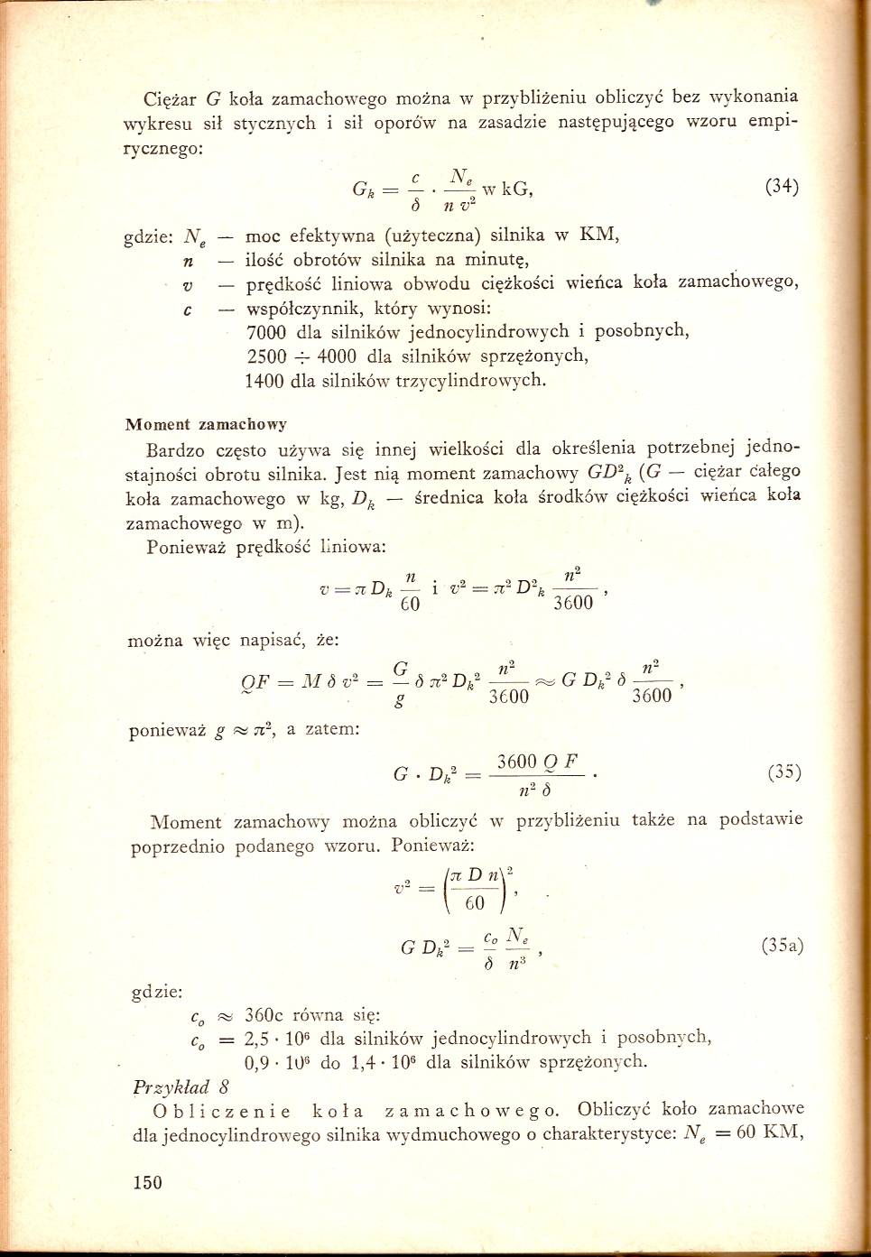1) dobór średnicy koła zamachowego - tabela? wzory?