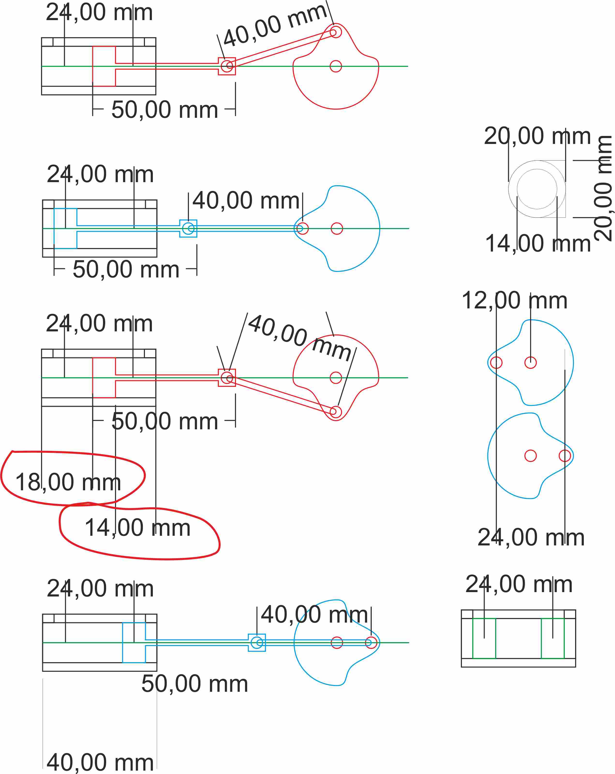 Z tego co widzę to już od pierwszego schematu (na górze) tłok nie jest na środku cylindra tylko zbyt mocno na prawo(o 2mm). Tyle zobaczyłem:P