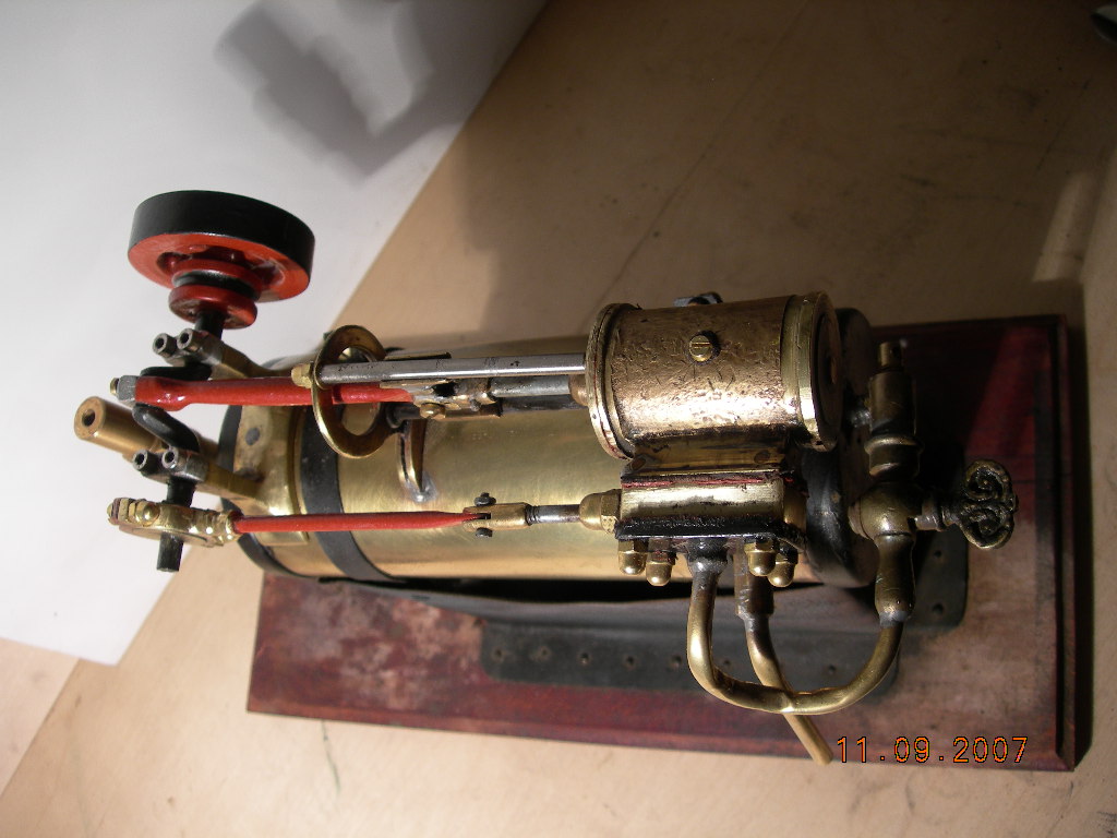 Witam . Przedstawiam kilka fotek maszyny po remoncie . Wykonałem nowy tłok jak radził kolega w poście oraz zmieniłem doprowadzenie pary do rozrządu . Wywierciłem i nagwintowałem otwór w cylindrze przez który można smarować tłok . Zamontowałem też zawór bezpieczeństwa w dość nie ciekawym miejscu ale nie chciałem robić nowych otworów choć i tak nie bardzo by było gdzie . W sobotę spróbuję go uruchomić i nagram jakiś filmik.
